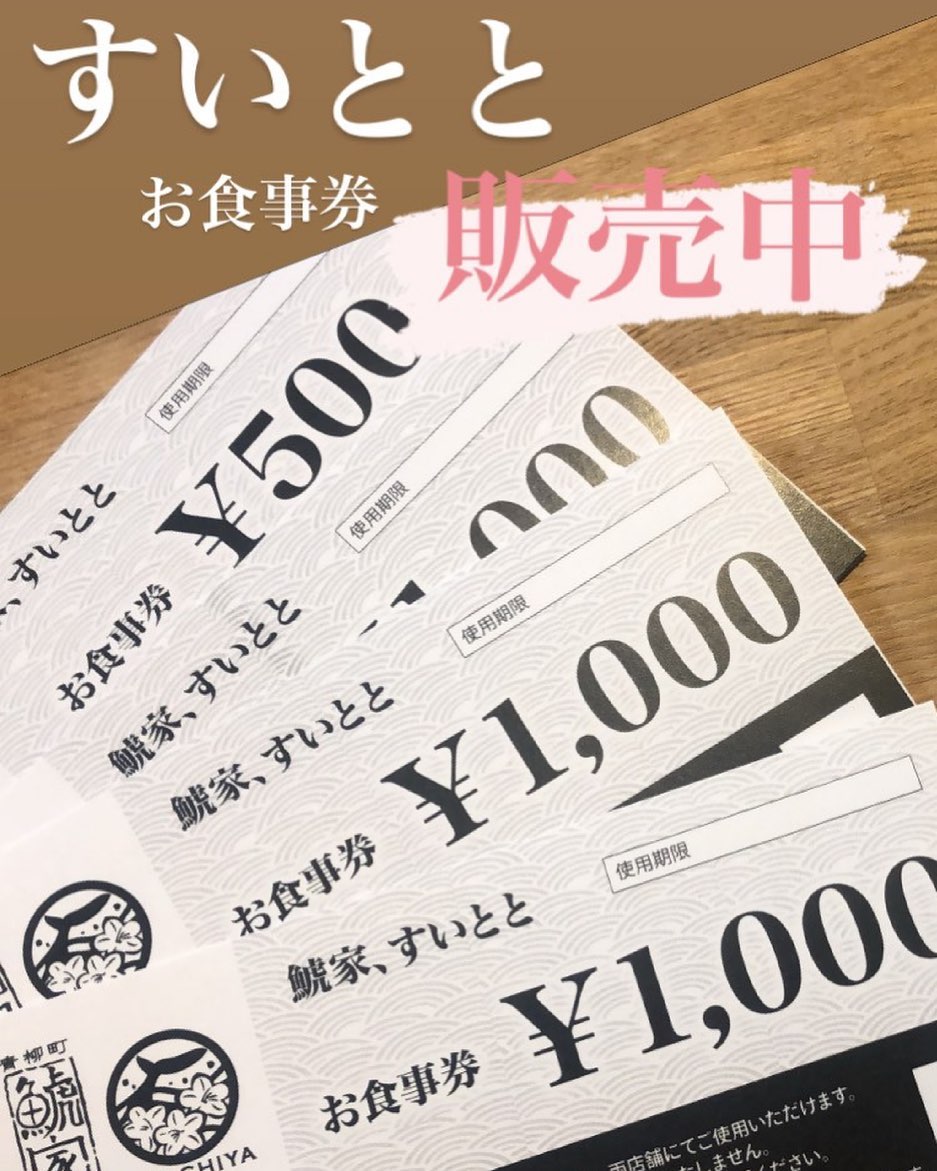 すいとと鯱家- お食事券販売開始!!-3000円分で500円券プレゼント!- 500 2024年10月7日Full resolution (937 × 1171) ← Previous Next → すいとと&鯱家 お食事券販売開始!! 3000円分で500円券プレゼント! 5000円分なら1000円券プレゼント 10000円分なら2000円券プレゼント 中です(//∇//) すいとと、鯱家、どちらでも利用可能です!! 何卒よろしくお願いします。