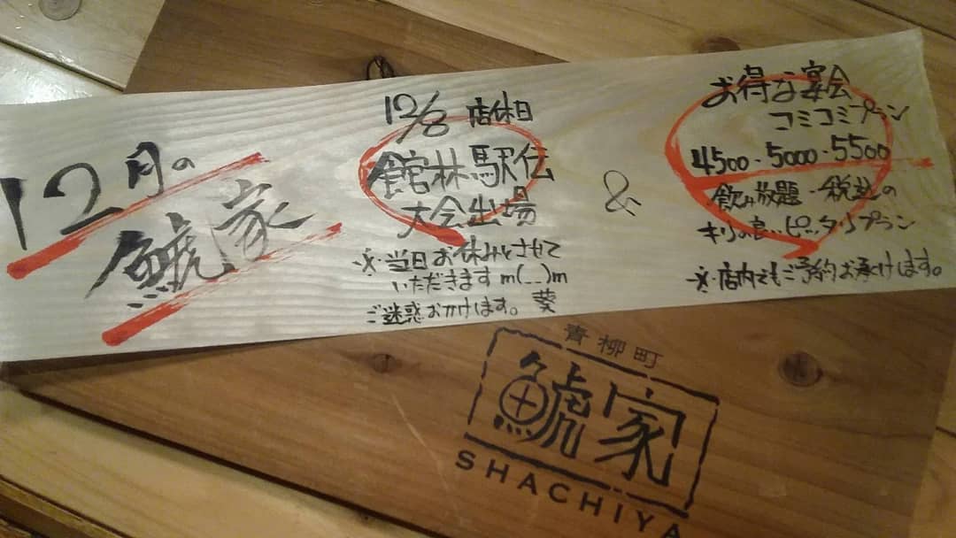12/8(日)スタッフ館林駅伝出場の為、お休みとなります。当日お時間ありましたら応援よろしくおねがいします! そして宴会プランのご紹介です! 忘年会シーズンですのでお得なコミコミプランご用意しております 御予約や相談などお気軽に御連絡ください #12/8